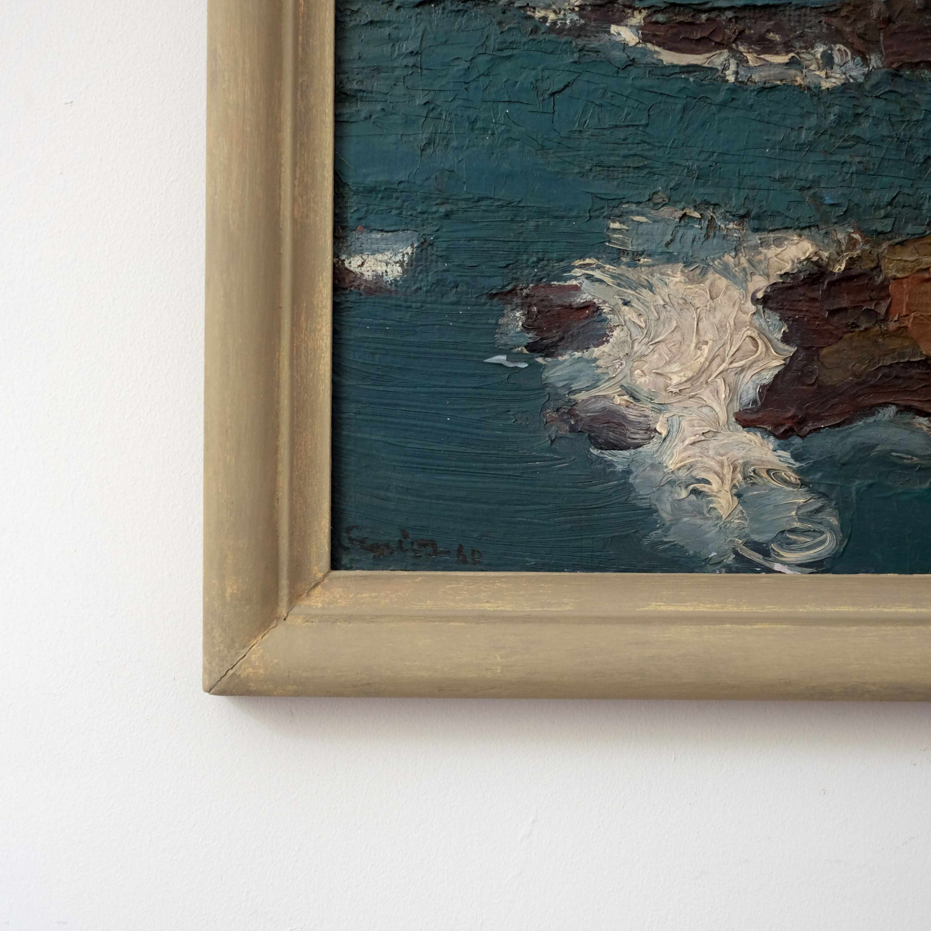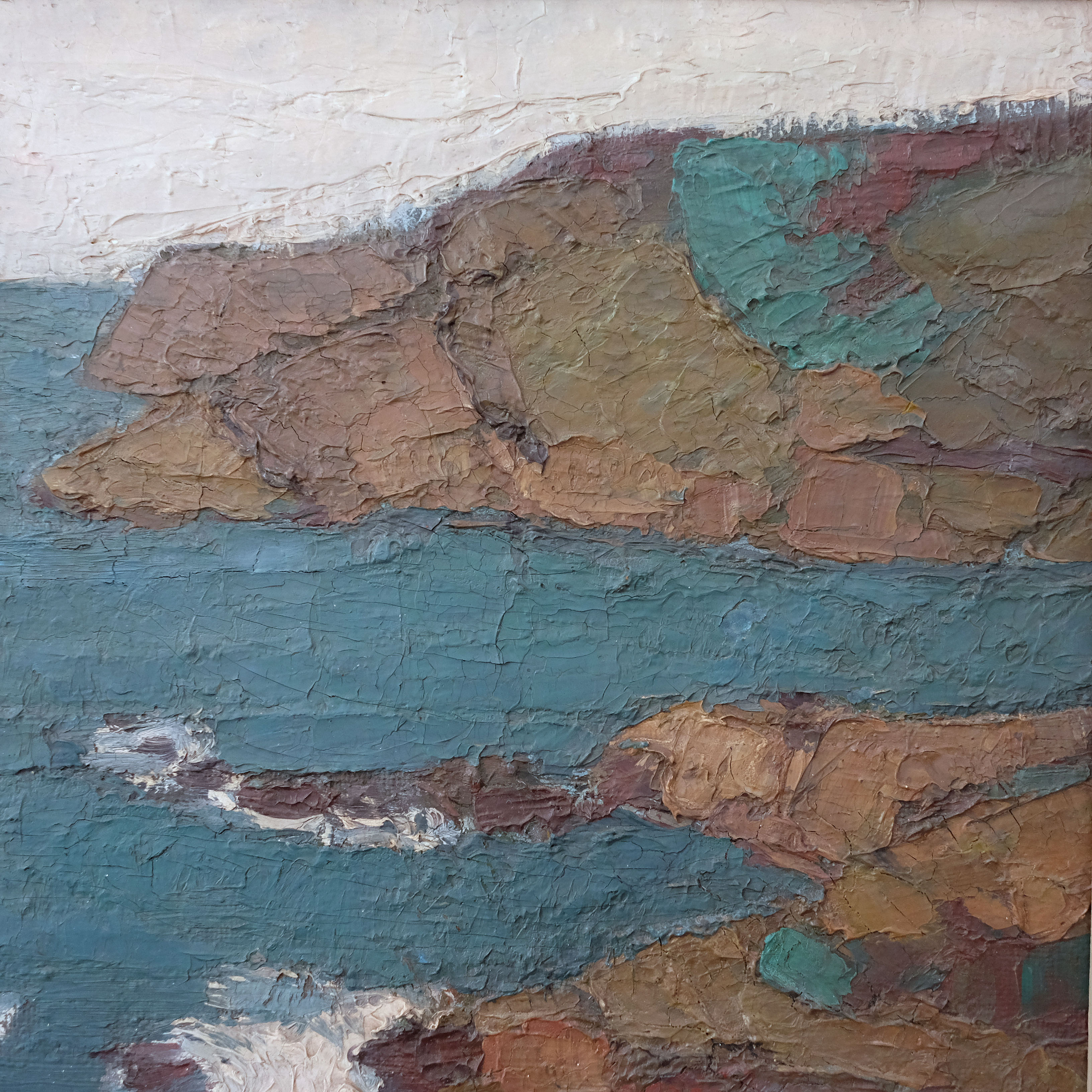 Rock Sand Sea, Sark 1960, Bryan Senior b.1935. Oil on canvas in bespoke frame. Exhibited at the Court gallery, 'Early Paintings' 2013.