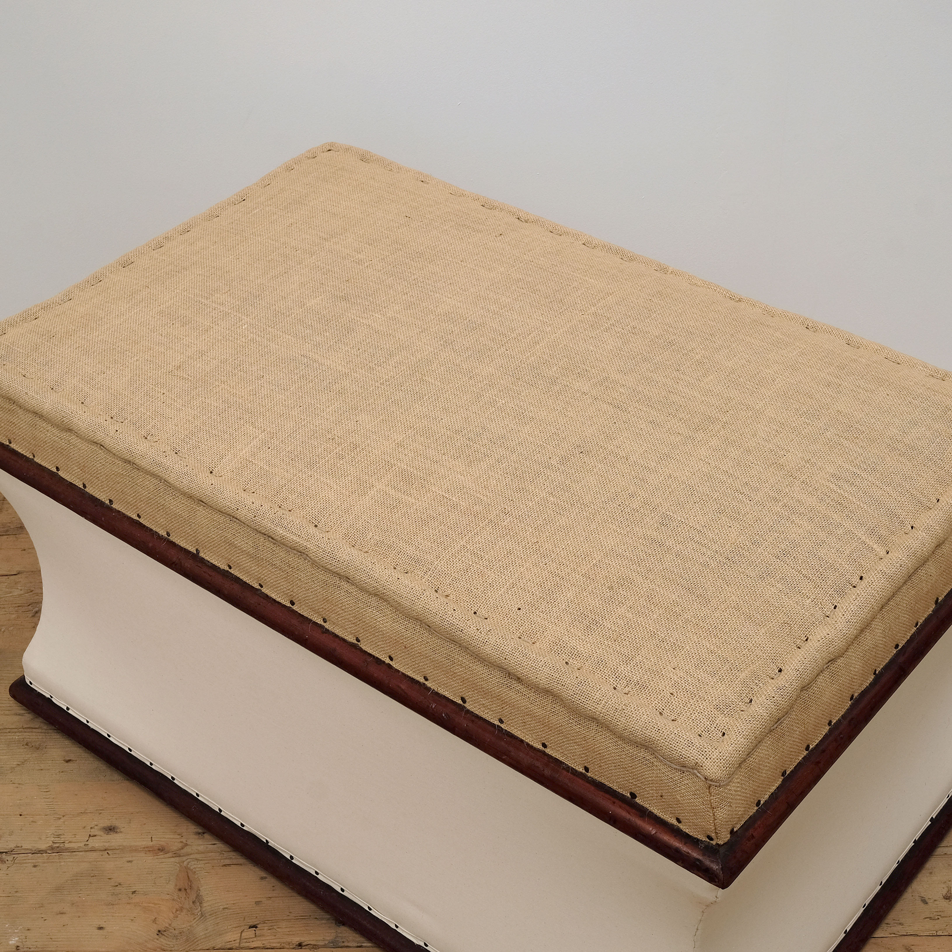 An exceptionally well made antique ottoman box. English, 19th century. Constructed in flame mahogany on original castors. Recovered in calico and hessian using traditional methods, ready for your material or can be used as is. Practical and good looking storage piece!