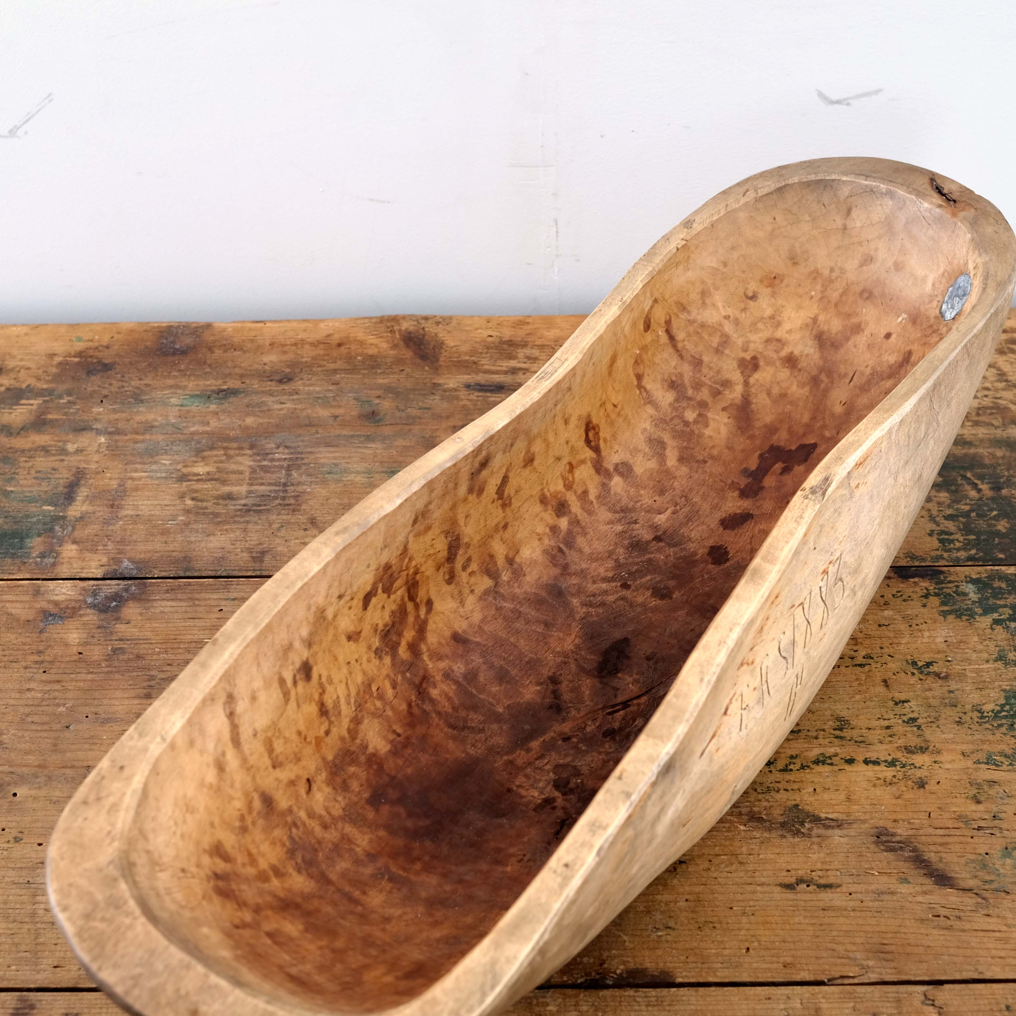 Late 19th century antique Swedish Folk Art bowl initialled and dated 1883. Lovely organic form that has been hand carved from a root. Nice signs of age and wear with soft edges. Often these bowls stayed in the same family and passed down through generations.