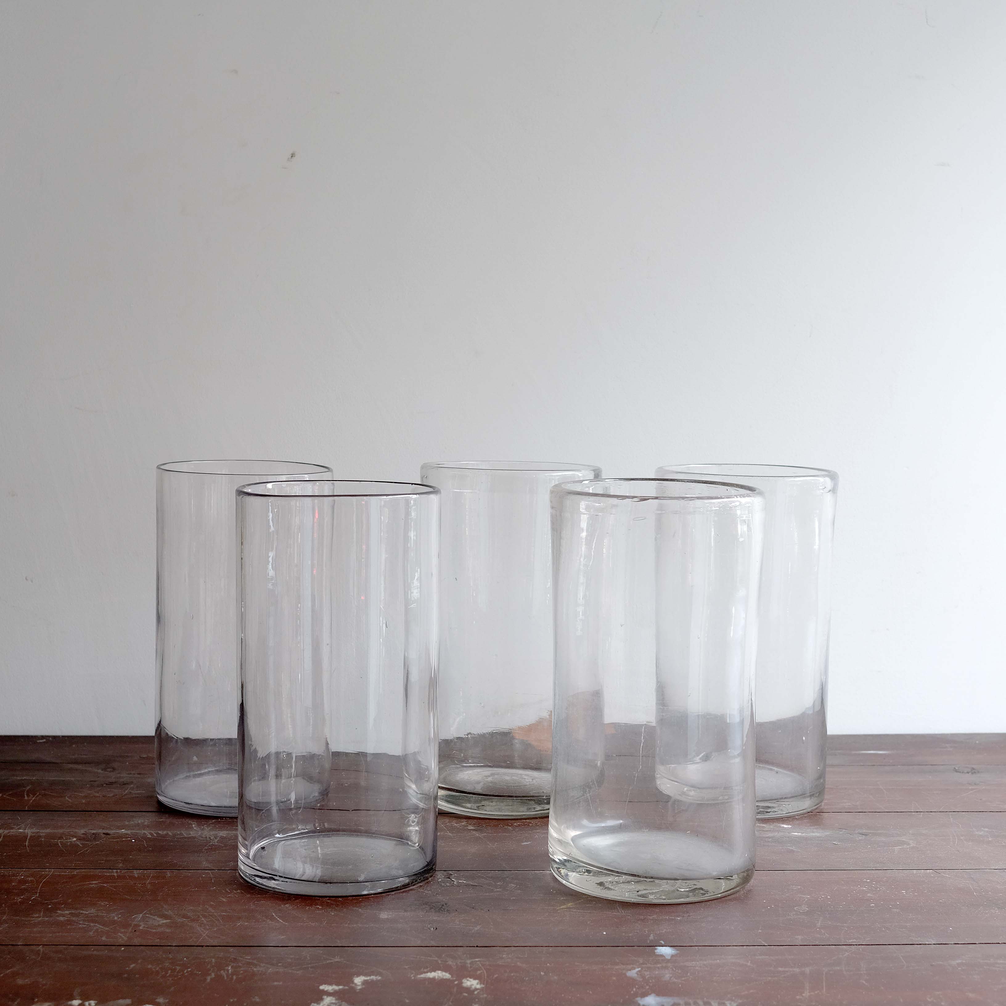 Large 19th century French hand blown vessels/ vases. Great simple forms and a satisfying weight due to the thick glass. No chips or cracks but all with lovely imperfections consistent with the hand blowing process.