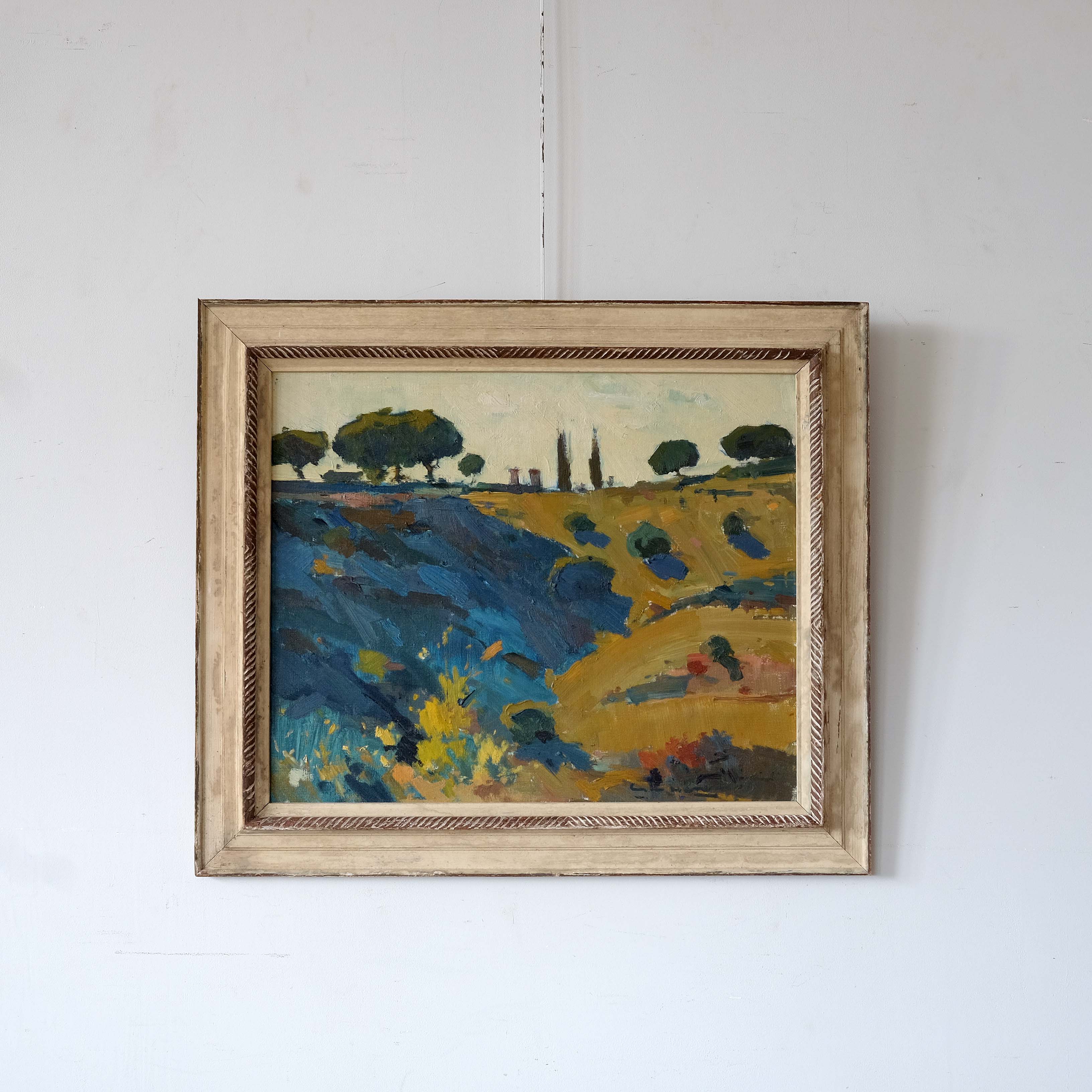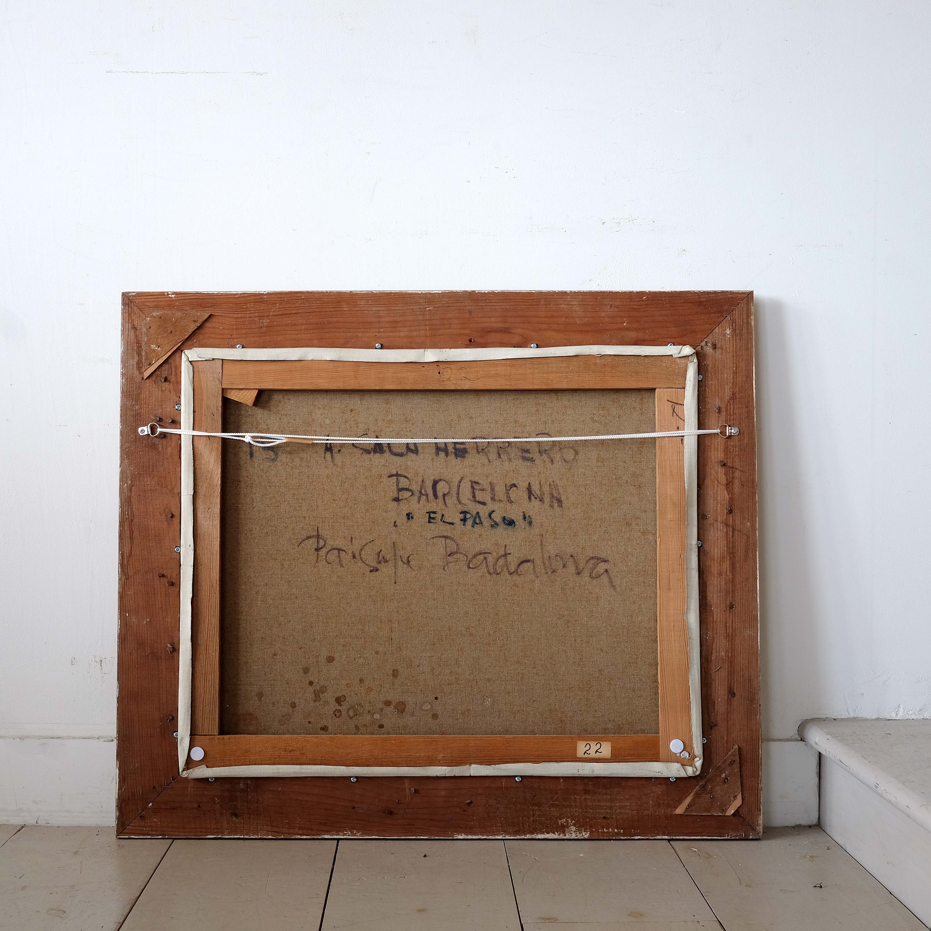 A wonderful Mid 20th century landscape, oil on canvas, signed 'A Sala Herrero' (Antoni Sala Herrero, 1927 - 2012). Titled 'El Paso' Paisaje Badalona. Paired with a vintage French frame.