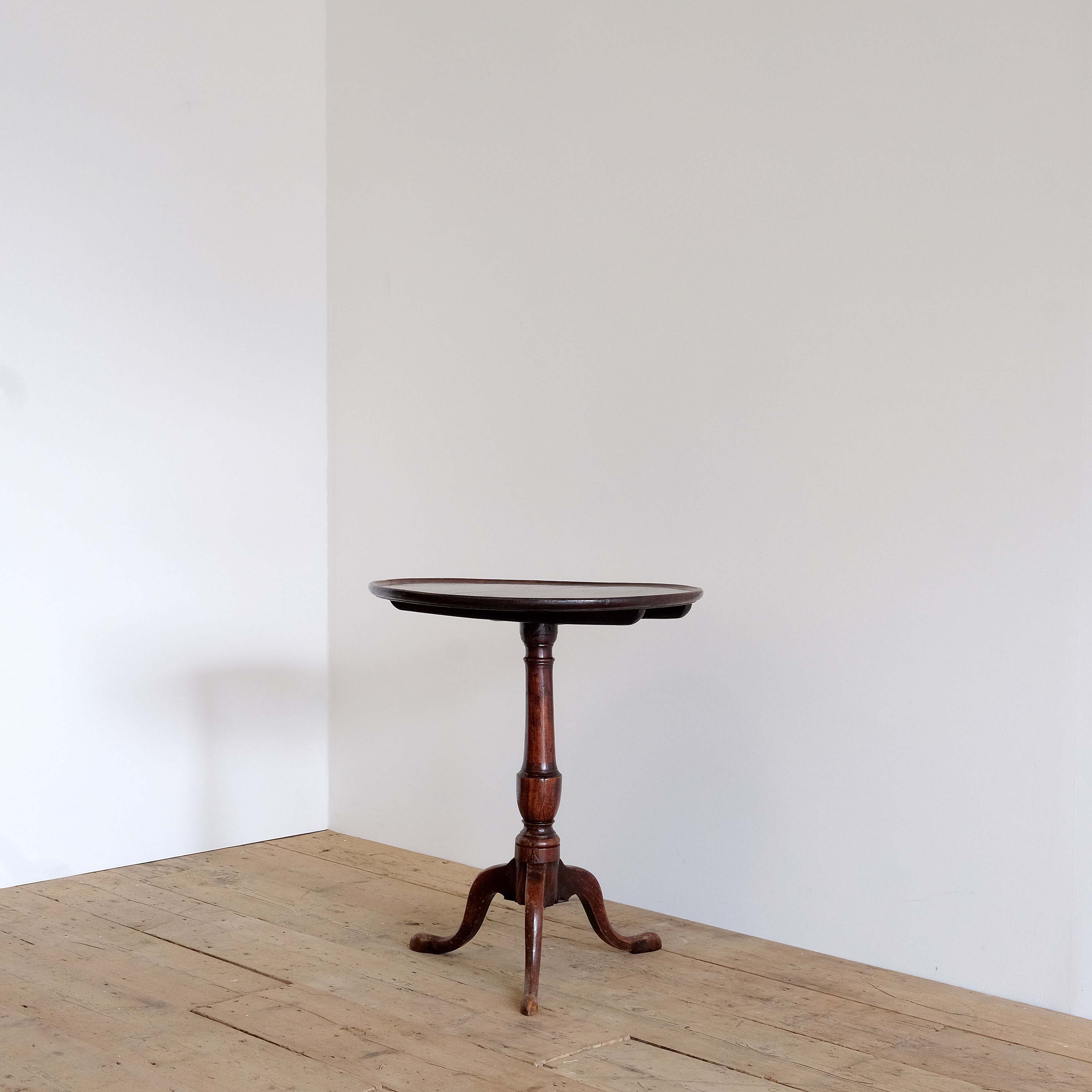 A fine quality George III side table in mahogany, England, circa 1780. Lovely dish top (that also tips up) on an elegantly turned pedestal base and pad feet. Nice rich patination and signs of age/ use.