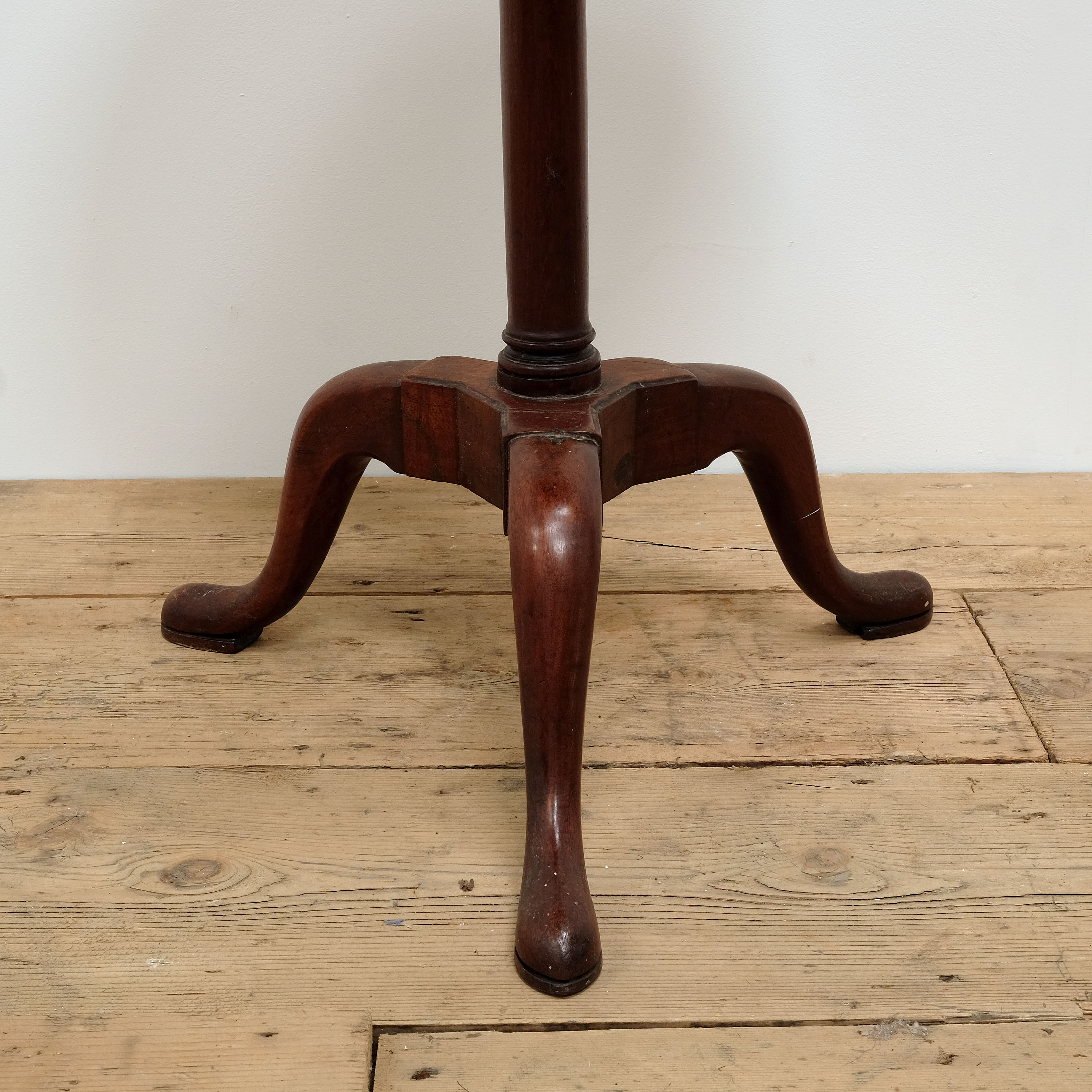 Elegant little George III wine table in mahogany. Unusual dish top on pedestal base with lovely architectural details ending on pad feet. Would also work well as a bedside table.