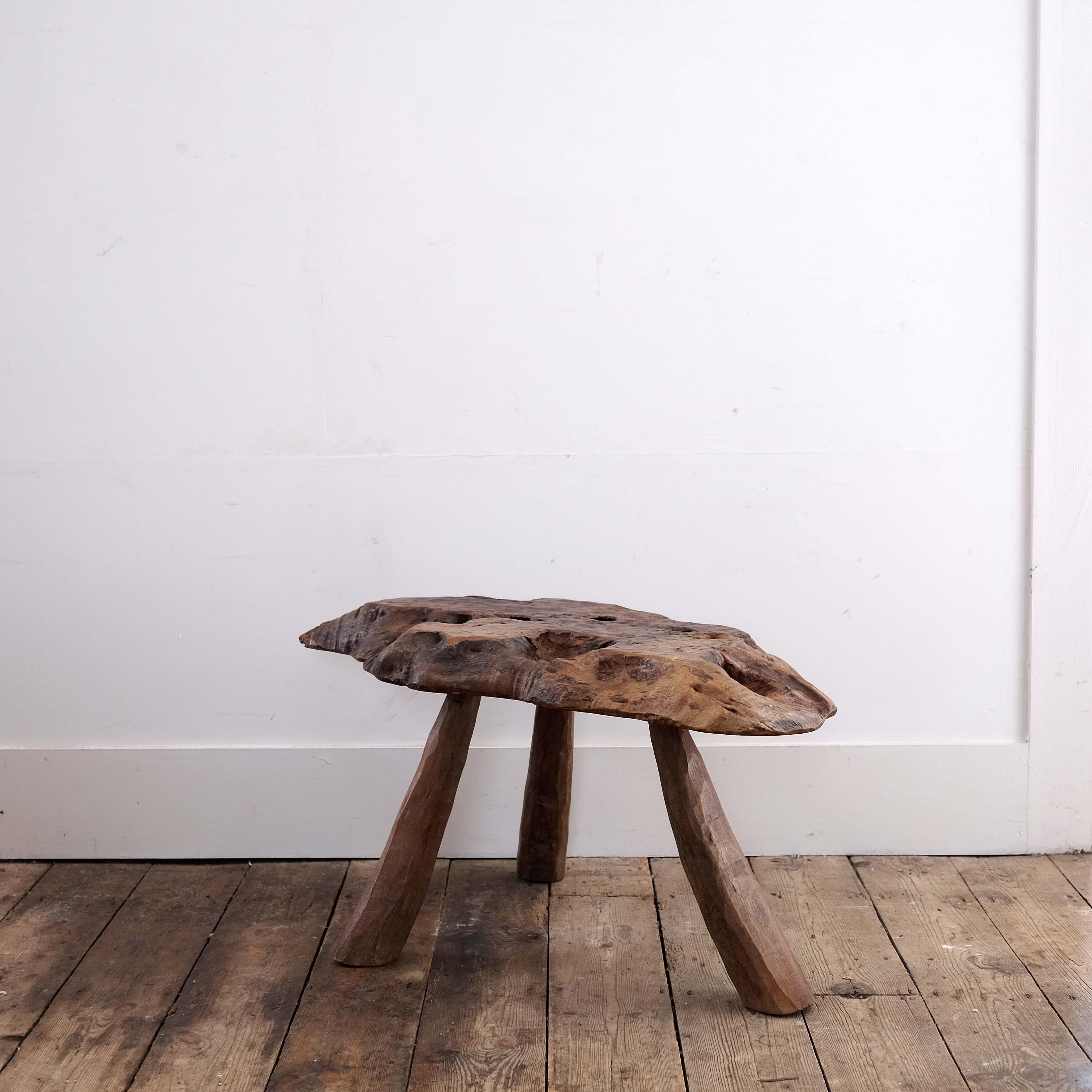 Mid 20th century French naturalistic side table in Elm. Fantastic sculptural form on peg legs. A very stylish piece.