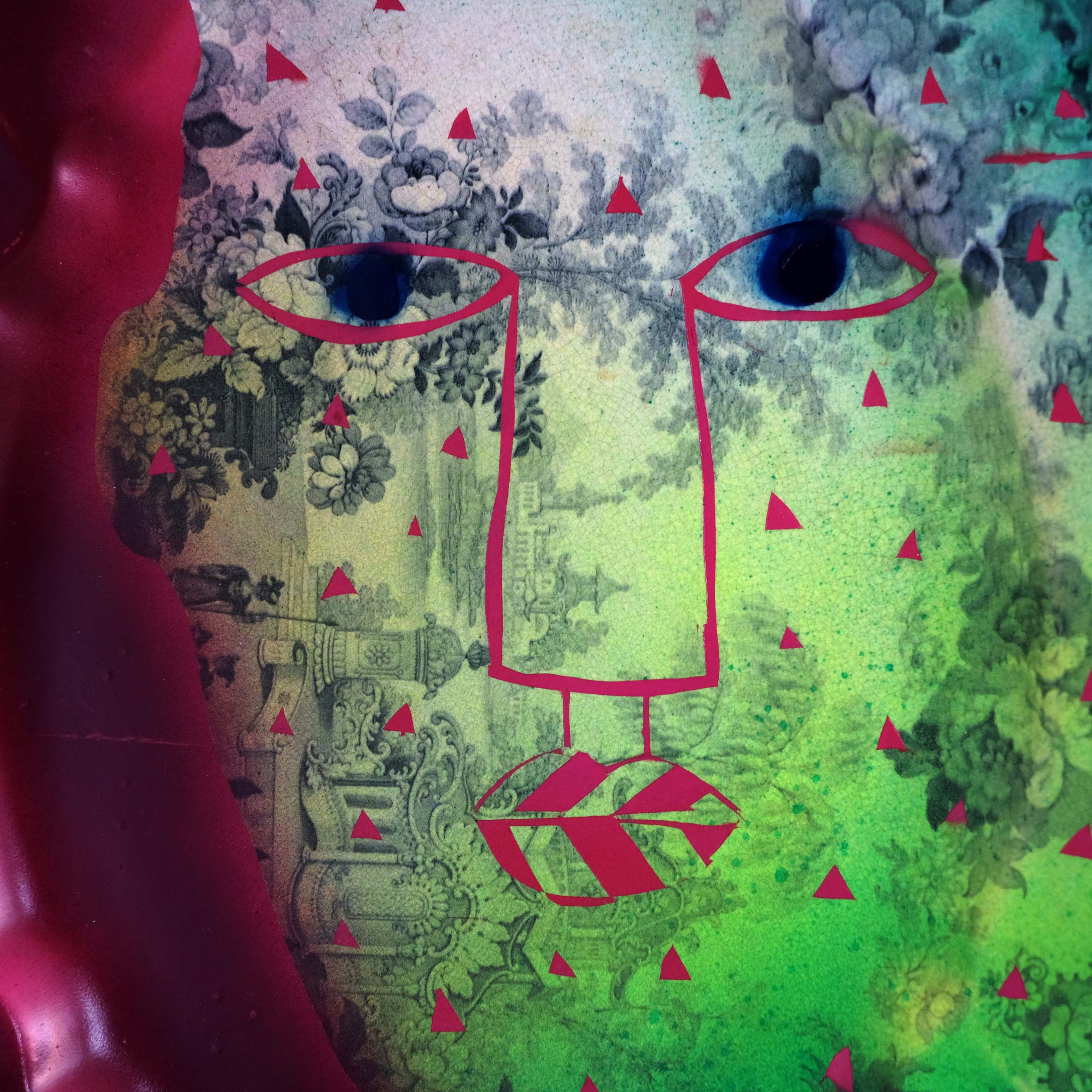 19th century antique English transfer ware dish, Ombre portrait by Isabelle Hayman. Can be wall hung or used as a decorating piece.