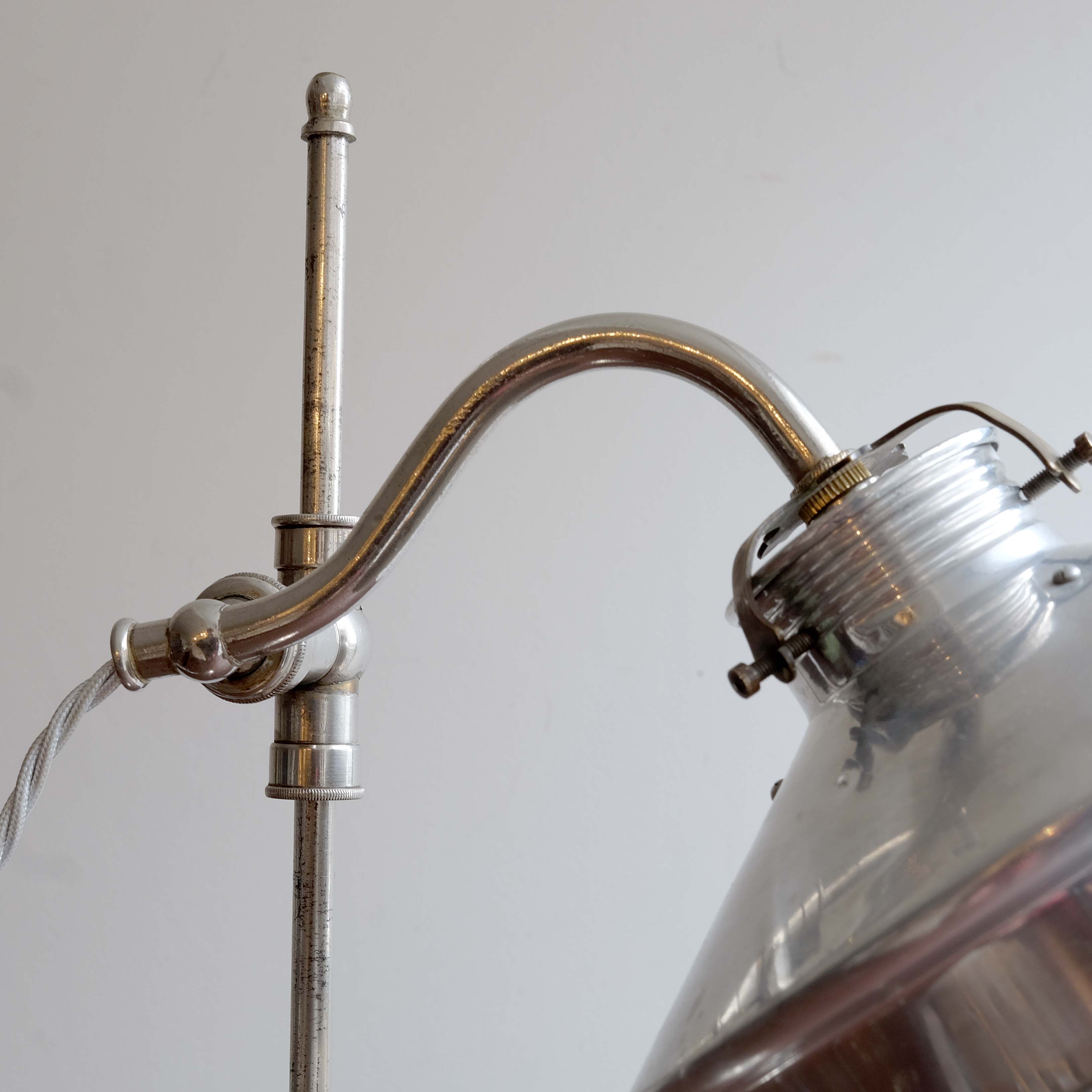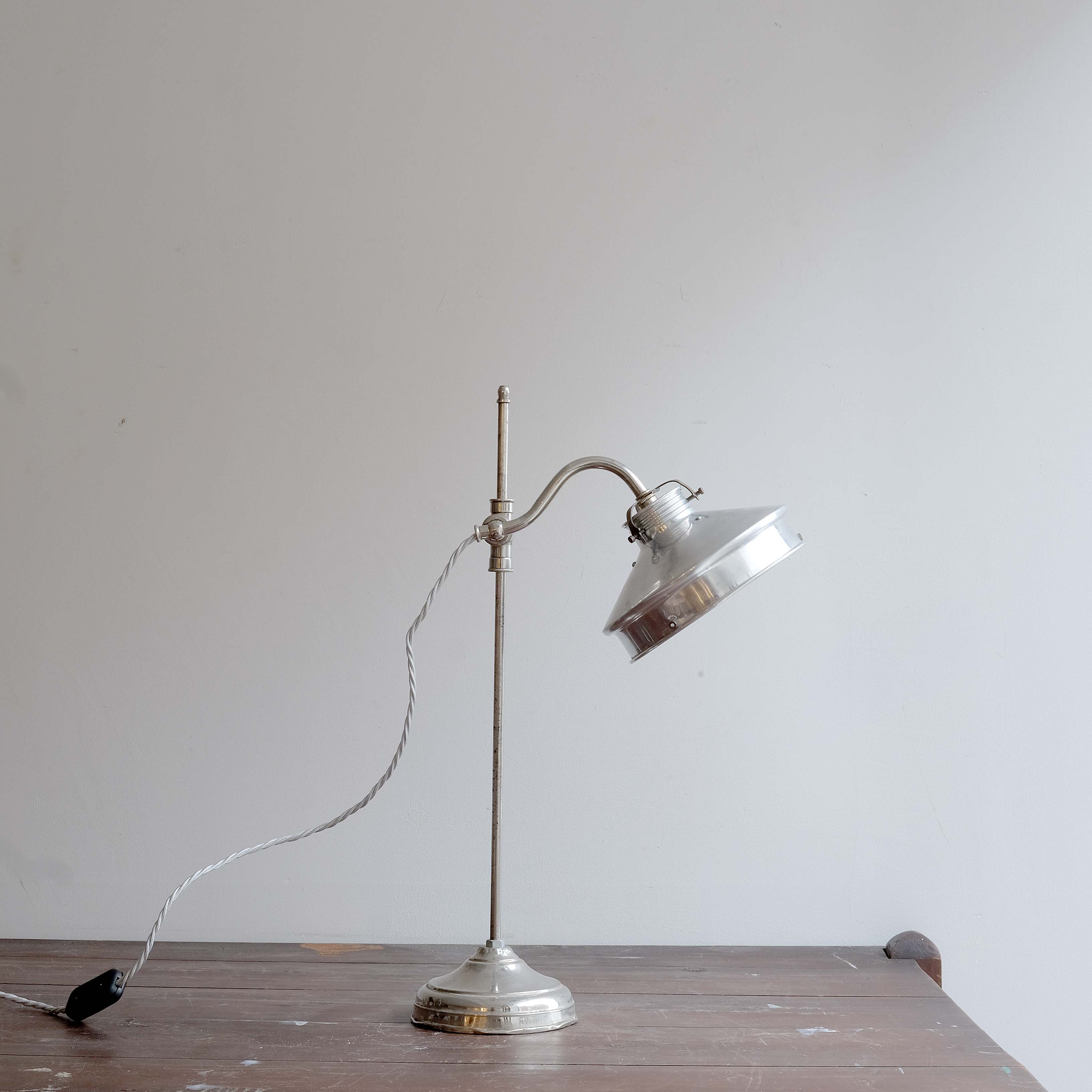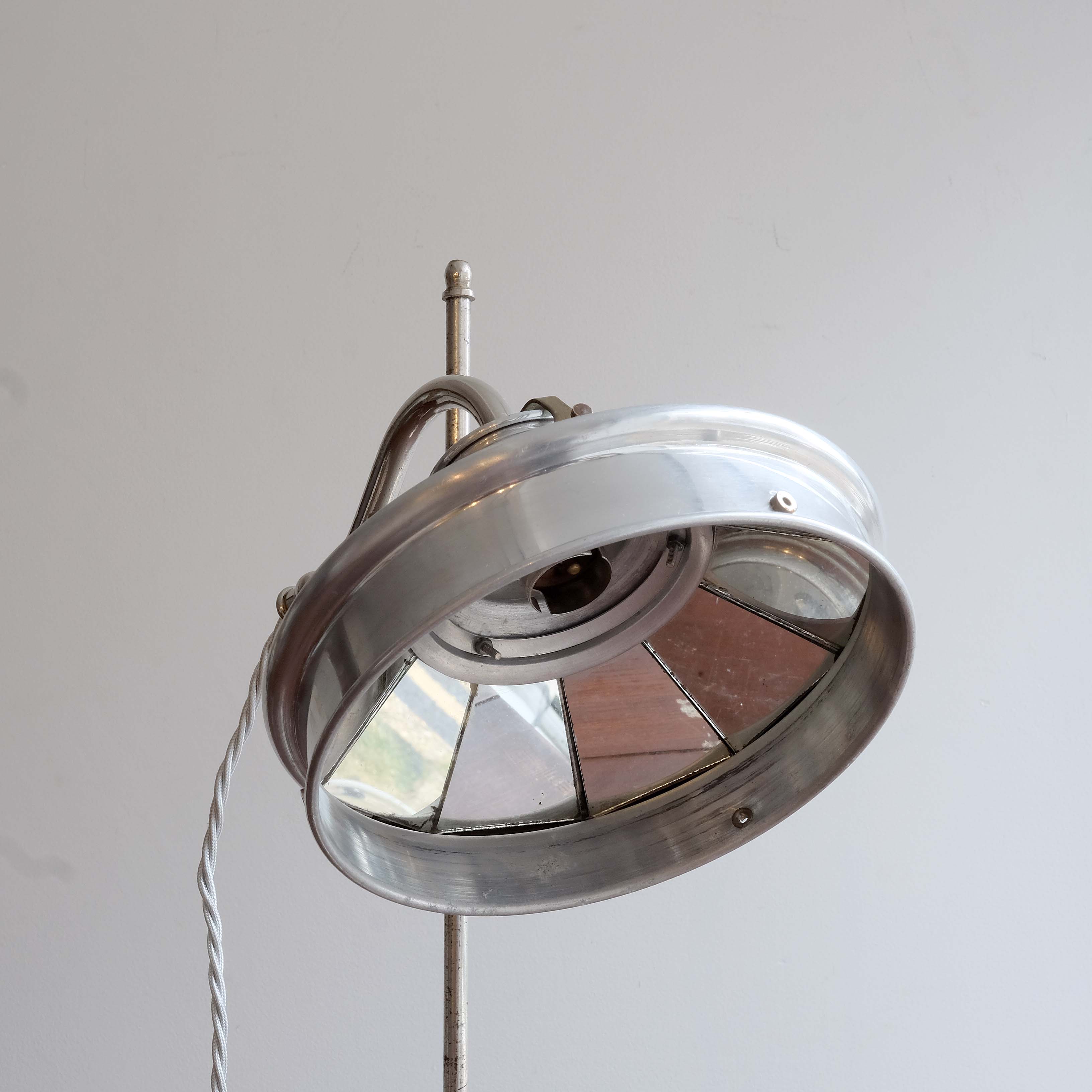French desk lamp in chrome with unusual mirrored shade. Early - mid 20th century and in good condition for age. Good quality height adjustable mechanism. Re-wired and PAT tested for UK use.